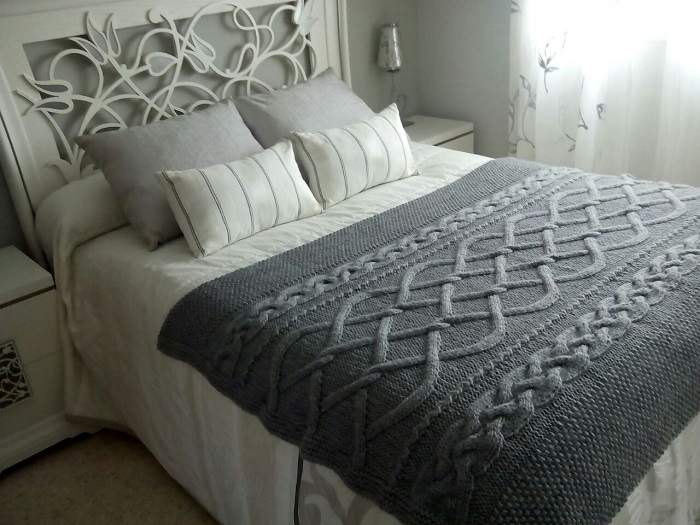 Вязаный плед и мягкие наволочки приятные на ощупь. / Фото: dizainmix.ru