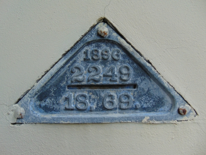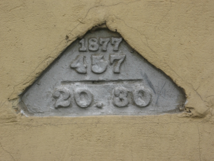 В то время проводились работы по прокладке канализации, требующие создания новой высотной геодезической сети. Каждая марка указывала высоту относительно самой низкой точки города. Чугунные марки, изготовленные в 1877 году, дошли до наших дней, и одну из них можно обнаружить на фасаде усадьбы Попова и Елагина в Лялином переулке. Эти метки устанавливались прямо там, где это было необходимо, например, на оградах церквей. Предполагается, что знак с номером «1372» был размещен в 1877 году.