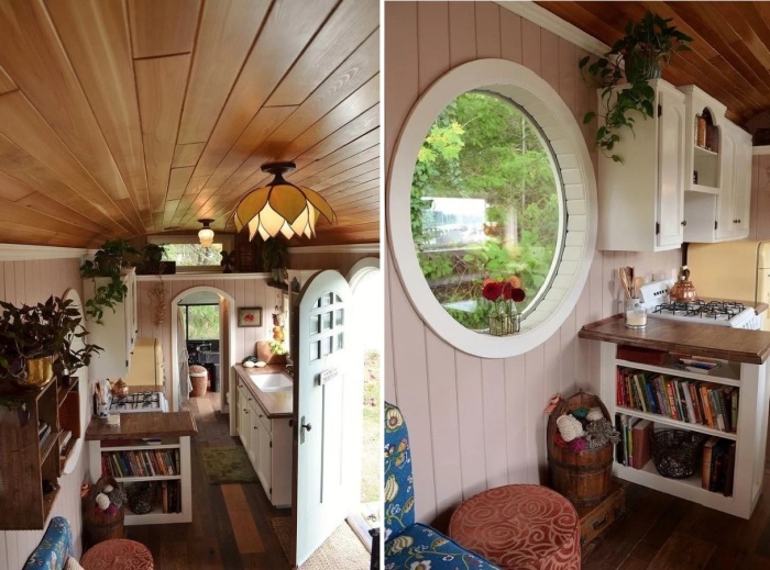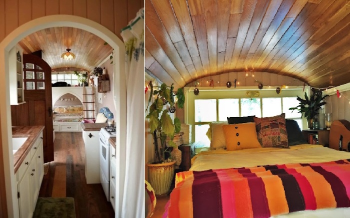 Только кабина напоминает о том, что сказочный домик все-таки автобус. | Фото: tinyhousetalk.com.