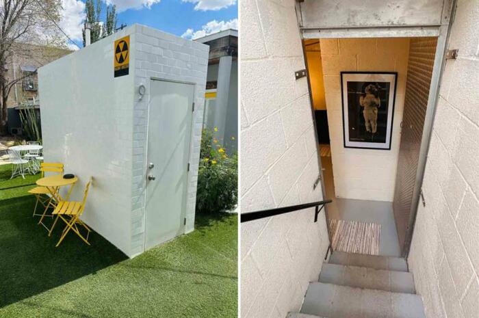 В центре города Марфа, на зеленом участке небольшого курортного комплекса The Lincoln, можно увидеть странный сарай, в котором ну разве, что пару тройку лопат получится хранить. Как оказалось, это вход в бомбоубежище времен «холодной» когда, когда каждый домовладелец пытался построить убежище для своей семьи. Нынешний же хозяин превратил бункер в необычный гостевой дом, который входит 14 арендуемых помещений, обустроенных на территории курорта.