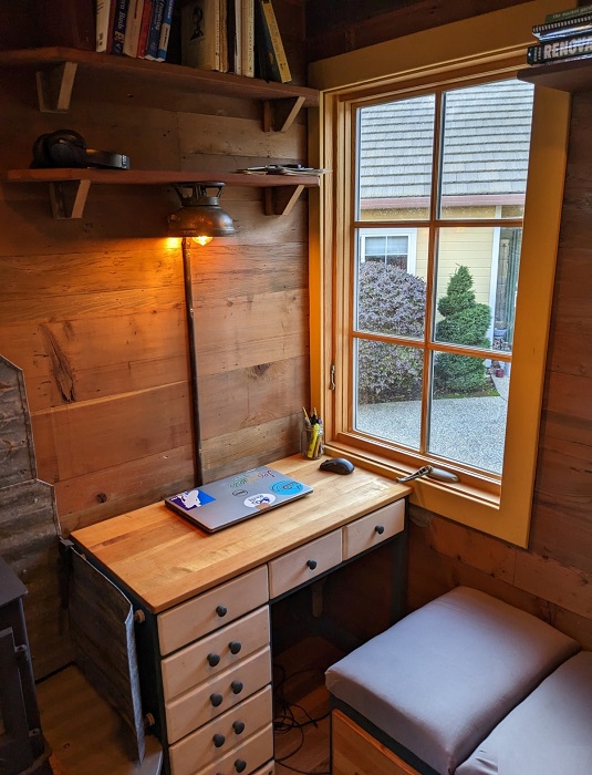 У окна организован домашний офис. | Фото: tinyhomebuilders.com.
