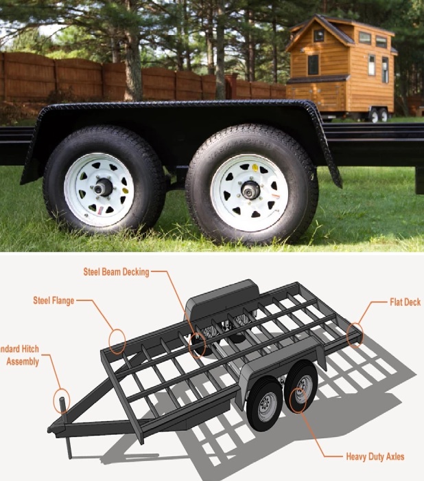 Крошечный дом Craftsman установлен на надежном двухосном прицепе.