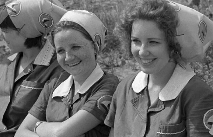 В СССР женщины переживали психологическую травму после Второй мировой войны. Страна столкнулась с огромными проблемами в экономике и промышленности после вооруженного конфликта. Населению приходилось поднимать промышленность с нуля. Рабочей силы не хватало, и на заводах было разрешено работать несовершеннолетним девушкам. Тяжелый физический труд сильно сказывался на женской внешности. У женщин болели руки и ноги от длительной тяжелой работы. Времени на «красоту» совсем не оставалось. Работницы просто мечтали хорошо выспаться и отдохнуть. За пару лет женщины могли состариться так, что сложно было отличить подростка от взрослого.