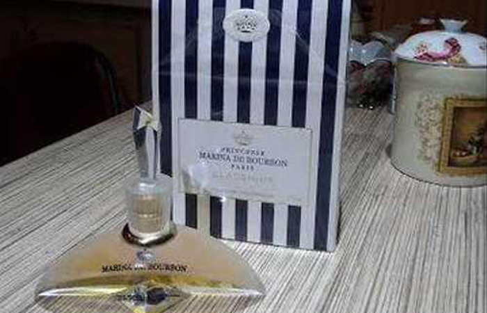 Духи от дизайнера Марины де Бурбон/ фото: estima.ru Художница решила использовать дизайн, который уже был придуман, но не ей, а декоратором Мариной де Бурбон. Она взяла основной рисунок упаковочной коробки духов Marina de Bourbon — первого женского парфюма от Марины де Бурбон. Затем художница добавила портрет Марианны в шляпе в овальной рамочке золотого цвета. Цвет золота был выбран неслучайно. Духи от дизайнера имели аналогичный цвет.