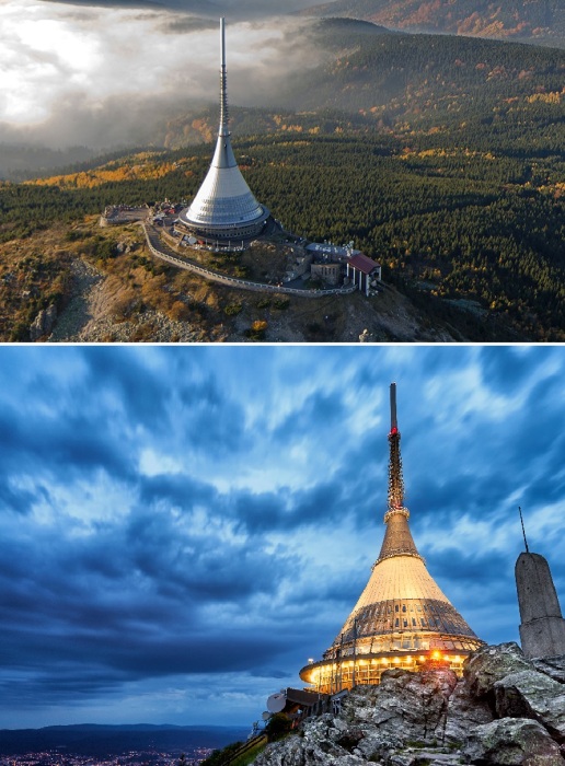 Телебашня с отелем и рестораном Jested стала символом космической эры в чешском городе Либерец.