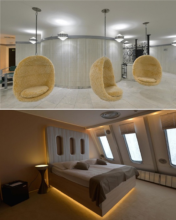 Меховые кресла и окна-иллюминаторы должны были напоминать «Космическую Одиссею» (Jested, Чехия).