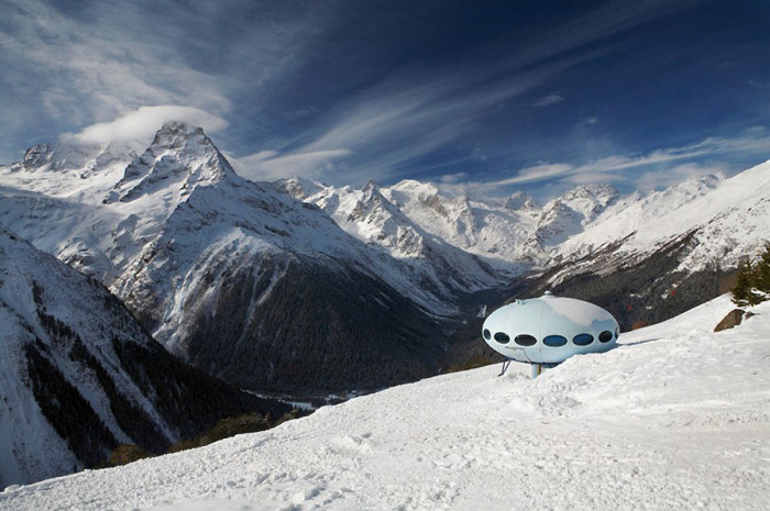 Легендарная «тарелка НЛО» в горах Домбая (Futuro, Россия). | Фото: simbiblis.livejournal.com.