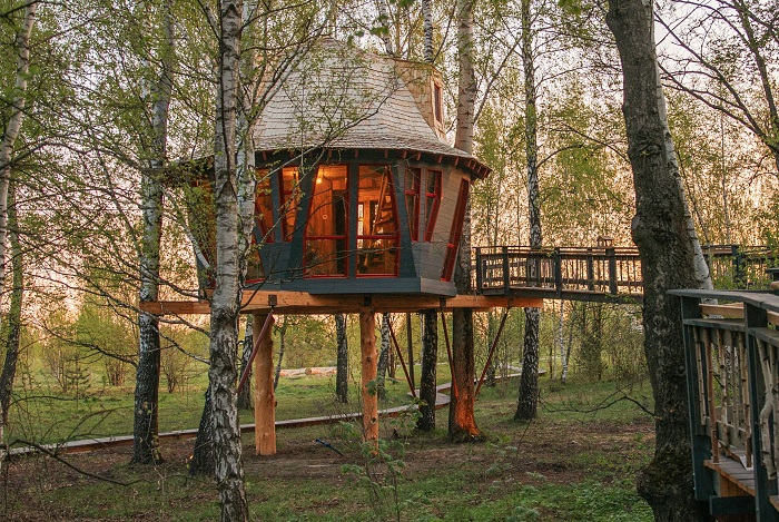 Фишка гостиницы – необычная локация «номеров» – они опираются на полувековые березы и в ветреную погоду качаются вместе с деревьями. Но бояться не стоит – домики надежные и абсолютно безопасные, поэтому вы сможете сполна насладиться особой атмосферой.