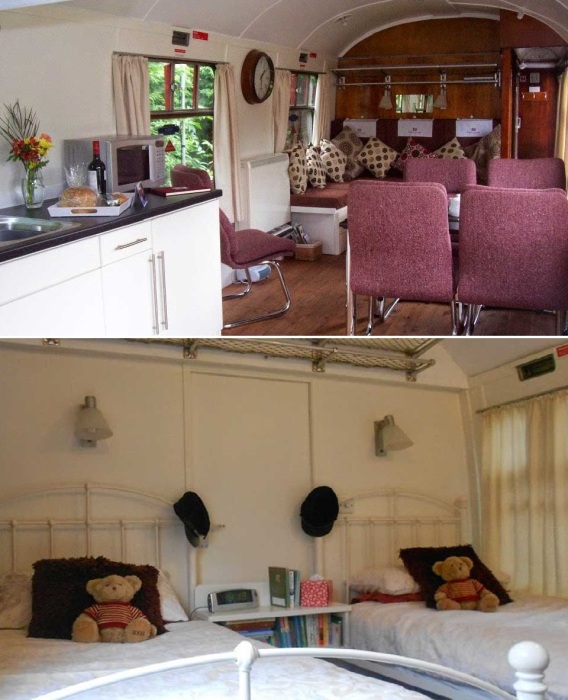Каждый вагон Railholiday превращен в комфортабельные номера (графство Корнуолл).