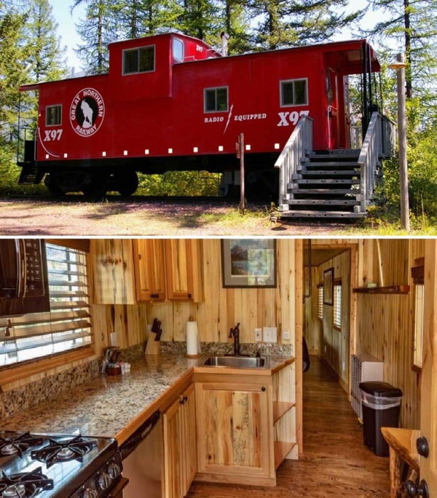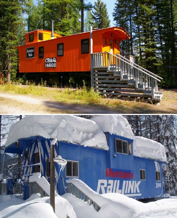 На окраине Национального парка Глейшер в Эссексе (штат Монтана) вот уже 85 лет действует старинный отель The Izaak Walton Inn, чья коллекция номеров пополнилась довольно необычными убежищами. К историческим лесным домикам и коттеджам, которые сдаются целиком, чтобы обеспечить максимальное уединение, добавилось сразу 9 самых настоящих железнодорожных вагонов. Для того чтобы обеспечить комфортными условиями отдыха привередливых современников, все они прошли основательную трансформацию, превратившись в пять «классических» номеров, а 4 – стали роскошными резиденциями.