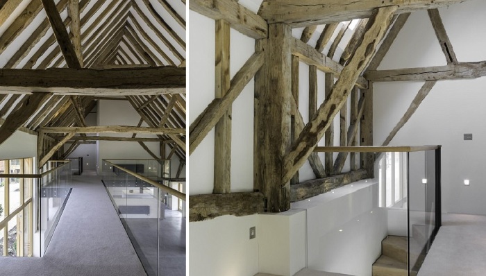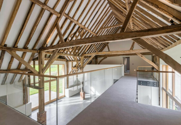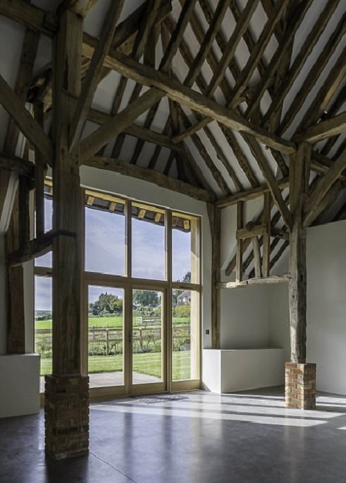 Такое завидное постоянство просматривается и в выборе дизайна. Опорные конструкции после реконструкции сохранили первозданный вид. Дубовые колонны, как и прежде, поддерживают кирпичные основания, а крышу – массивные балки, возраст которых восходит к XVII веку. Причем, как подозревает Марк Пармент, до строительства амбара они использовались в другом строении, ведь в былые времена владельцы не были расточительными. Хозпостройки всегда строились из старых материалов, ни один фермер не покупал бы новую древесину для таких нужд.