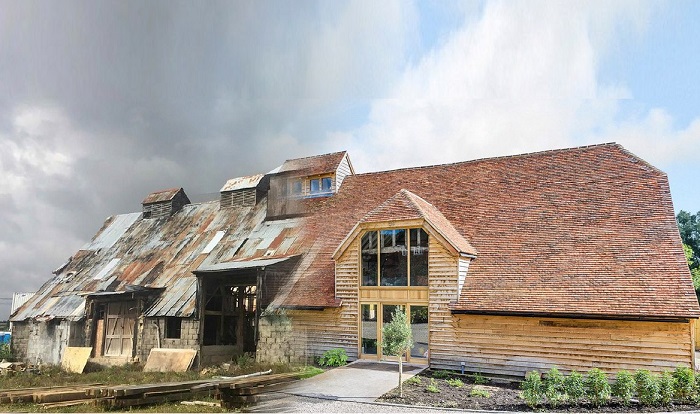 Когда речь заходит о преобразованиях старых зданий, то легких путей искать не приходится, особенно если это сельскохозяйственные строения, которым уже более 400 лет. Британский застройщик Марк Пармент, зная о всех проблемах все же не побоялся приобрести обширный участок земли с заброшенной фермой, состоящей из трех ветхих зданий (в запустении около 30 лет), за который выложил почти 1,2 млн евро. Расположенный всего в часе езды от Лондона, неподалеку деревни Грейвелл в боро Бейзингсток, что в графстве Гэмпшир, он для многих являлся лакомым кусочком, но тот факт, что на этом участке нет пригодных для жизни строений, а реконструкция под силу только специалистам, останавливал потенциальных покупателей.