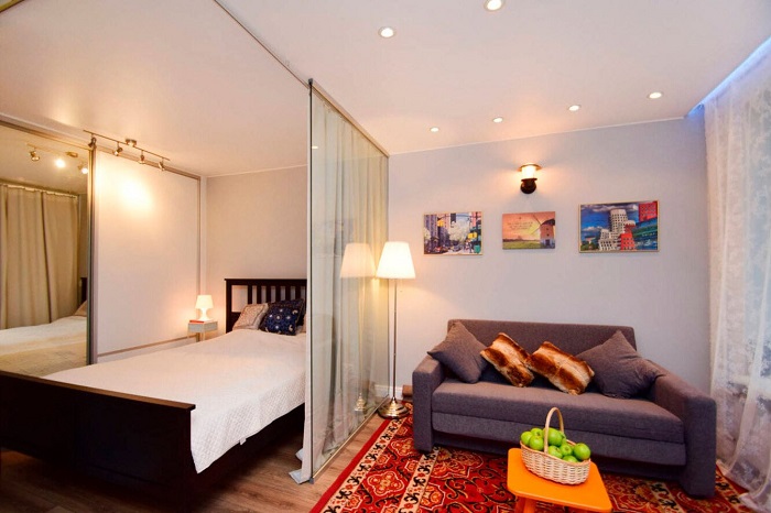 В маленьких квартирах принципиально важное значение имеет даже пара сантиметров, поэтому самым правильным решением будет изготавливать основную мебель на заказ. Так, например, если немного уменьшить глубину шкафа, сократить длину кровати и ширину комода, можно добиться идеального баланса между красотой и функциональностью. Вы не будете спотыкаться о мебель, цепляться дверцей шкафа о кровать или думать, какой ящик комода открыть первым, потому что одновременно это сделать не получается.