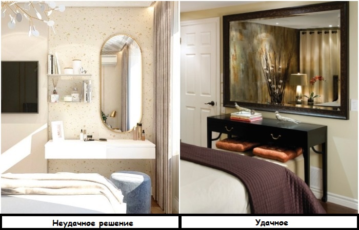• чтобы расширить границы узкой или темной комнаты, повесьте зеркало напротив окна или недалеко от него. Таким образом вы сможете увеличить количество света, которое попадает в помещение; • чтобы зрительно сделать прямоугольную, вытянутую комнату более квадратной, повесьте зеркала на длинных стенах; • чтобы придать помещению воздушности и легкости, расположите зеркало напротив броского, светлого и объемного декоративного элемента; • чтобы не нарушать гармонию в спальне, не вешайте в комнате овальные зеркала – они плохо сочетаются с продолговатым изголовьем кровати.
