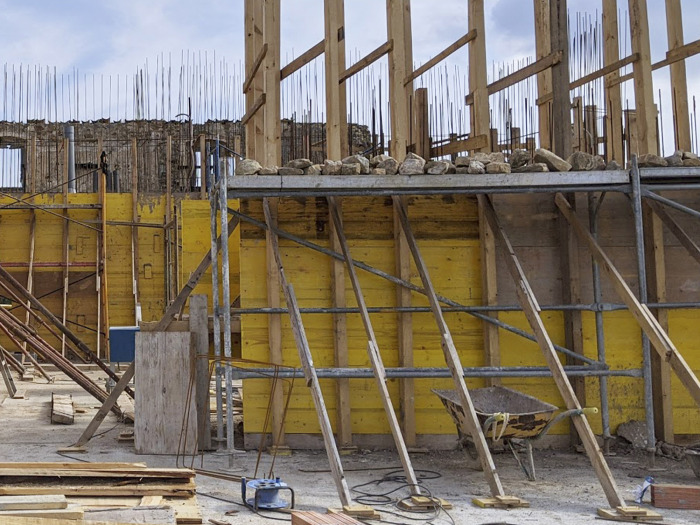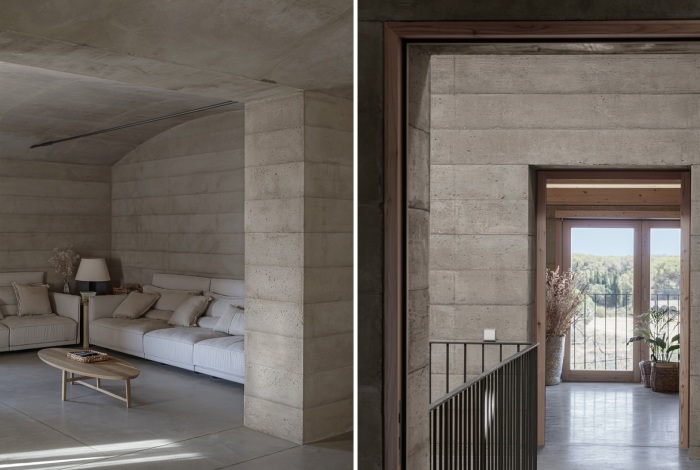Примечательно: В случае с Casa 1627 на помощь пришел прогресс, поскольку удалось использовать старый дедовский способ на современный манер. А именно, для возведения толстых стен использовали циклопический бетон, предусматривающий использование камней размером свыше 30 см, которые заливаются бетоном высокой плотности в предварительно собранную конструкцию под названием опалубка. Чтобы повысить теплоизоляционные свойства наружных стен, в бетон добавляли арлит и заливали слоями по 25 см. Таким же образом сохранили остатки аутентичной каменной кладки, которую можно увидеть и сейчас на северной и восточной сторонах. Эти фрагменты не закрывали бетоном преднамеренно, стараясь подчеркнуть связь с прошлым и нынешним.