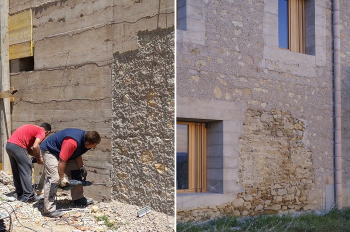 Стены заливали по 25 сантиметров, используя крупные камни, бетон и арлит. | Фото: harquitectes.com.