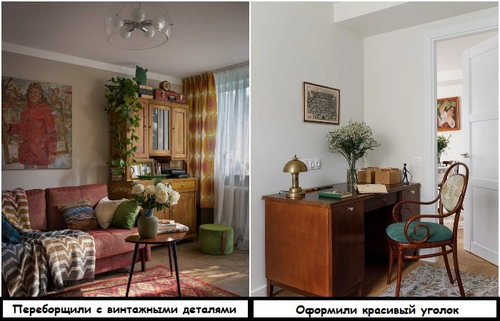 Конечно, речь идет не обо всех винтажных деталях, а лишь о тех, которые подобраны бездумно. Ретро-элементы очень яркие и самодостаточные, поэтому украшать ими интерьер нужно очень осторожно, чтобы на выходе не получить «бабушкину» квартиру. Используйте их точечно, в качестве акцентов. Если это большая вещь, например, ковер или кресло, хватит и одного предмета. Маленьких деталей можно добавить чуть больше.