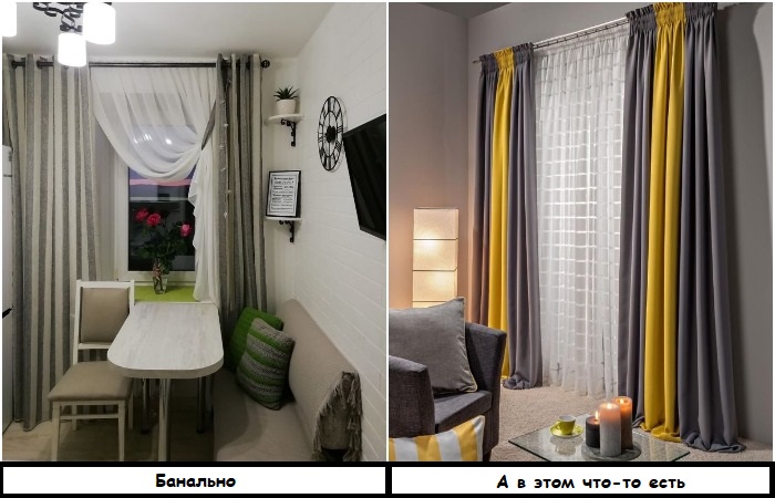 Если вы хотите, чтобы шторы были не базовым элементом квартиры, который просто «должен быть», а стильной составляющей интерьера, тогда необходимо делать ставку на мелкие, но важные детали. Например, очень эстетично выглядят длинные гардины, которые складками лежат на полу. Хотите плотные шторы? Тогда обязательно обращайте внимание на подклад – тогда они не будут выглядеть несуразными «тряпочками». А в случае с красиво оформленным подоконником или яркими батареями, которые хочется оставить на виду, следует заменить классический тюль на французскую штору. При этом плотные портьеры оставьте по бокам, завершая композицию.