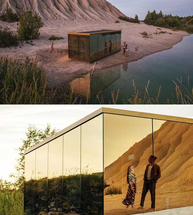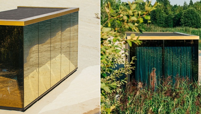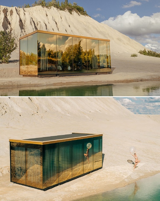 Инновационное стекло с зеркальным напылением адаптируется под окружающую среду (дизайн-проект Golden Tiny House).