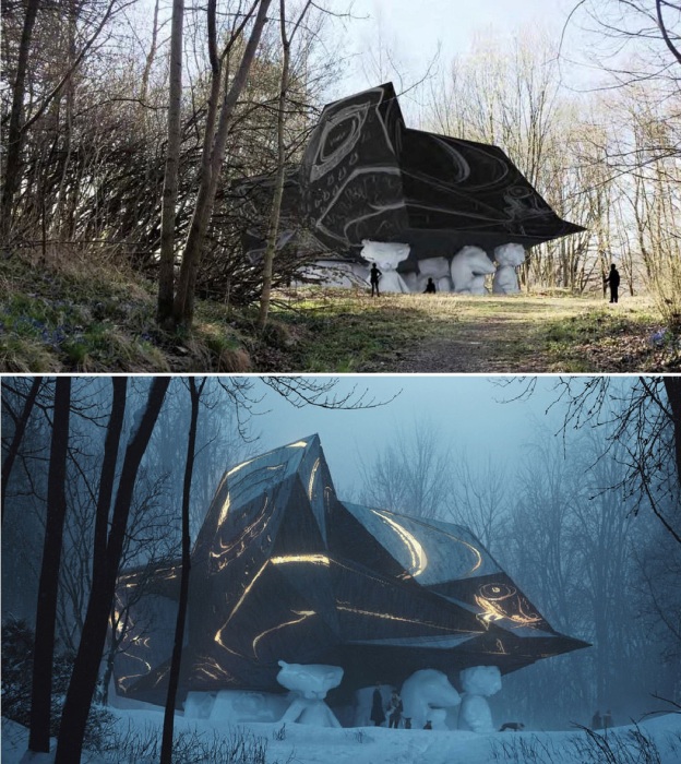 Мартин Гран, который давно сотрудничает с архитектурно-дизайнерской фирмой Snøhetta, разработал концепт сюрреалистичной резиденции, которая будет построено рядом с бывшим домом Эдварда Мунка, чтобы продолжить традицию района как художественного центра. Расположенное в природной зоне Осло, необычное жилище будет представлять собой конструкцию футуристической формы, опирающуюся на скульптуры в форме животных. Фасад будет облицован натуральным деревом, которое не планируют обрабатывать лакокрасочными материалами. Вдохновляясь строительными традициями Японии, разработчик рассчитывает на естественное обветривание обожженной древесины, что на протяжении последующих лет позволит менять облик дома по мере ее старения.