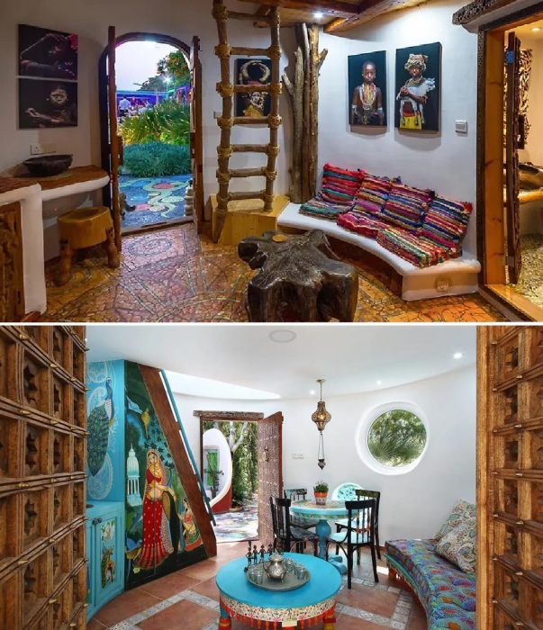 Домики, вдохновленные пузырями, были построены из перерабатываемых материалов в соответствии с принципами органической и биоклиматической архитектуры. Вдохновением для создания такого причудливого объекта стали народные традиции и искусство народов Эфиопии, Индии и Мексики. Каждый из объектов имеет динамичную, волнообразную форму и покрыты потрясающе замысловатой мозаикой. Этот красочный отель может похвастаться удивительными элементами в виде потолочных окон, куполов, красочной мебелью, изысканными деталями ручной работы. В каждом захватывающем номере-домике как минимум одна спальня и ванная комната, а в апартаментах можно насладиться еще и отдыхом в гостиных и собственных террасах.