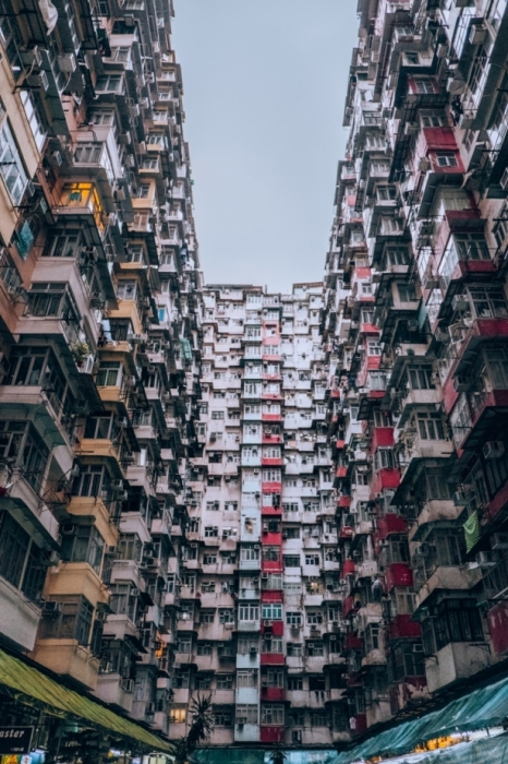 Многоэтажные дома являются наиболее распространенной формой размещения для среднестатистических жителей Гонконга, но и они тесные и переполненные. При этом даже такие жилища купить очень дорого и сложно, поскольку пользуются высоким спросом. Обычные квартиры, как правило, очень маленькие, особенно в популярных центральных районах, а в качестве «запредельной» роскоши является балкон, имеющий вид на соседские окна или балконы.