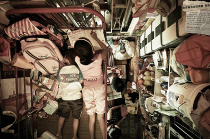 За последние несколько лет Сеть переполнилась шокирующими фотографиями, на которых запечатлены гонконгцы, живущие в так называемых «гробовых» домах. Это многоэтажные дома, квартиры которых разделены на множество крошечных помещений. Дошло до того, что предприимчивые владельцы квартир, площадь которых в пределах 35-40 кв. метров делят ее на 20 двухуровневых комнатенок (!), изолированных спальных мест. Кухонные и туалетные блоки обычно также имеют крошечный размер, они являются общими для обитателей нескольких мини-кабинок.