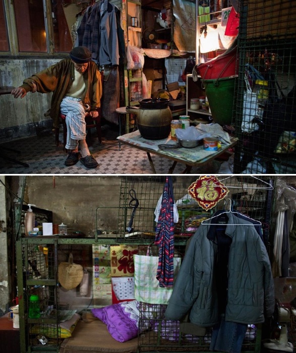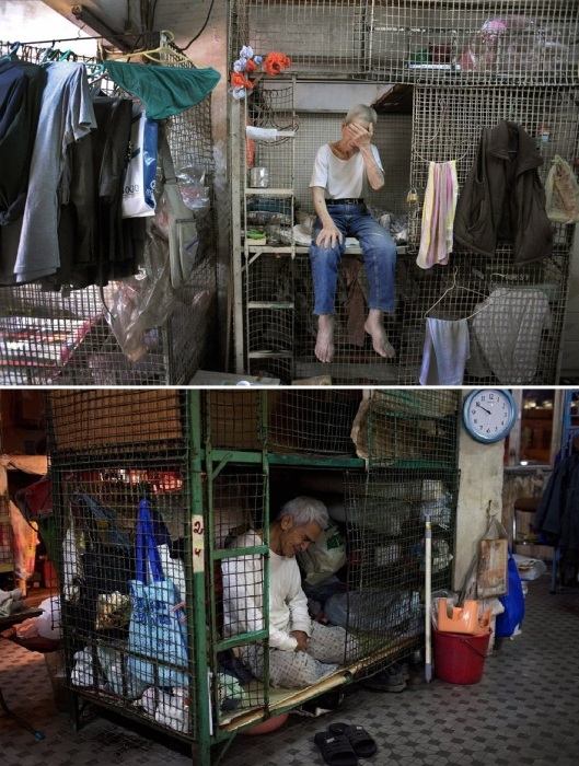 Цены на недвижимость в Гонконге стали неподъемными до такой степени, что самым бедным жителям города ничего не остается делать, как селиться в самых настоящих клетках площадью 1,4 кв. м, которые находятся не в многоквартирных домах, а в каких-то полуподвалах, совсем непригодных для жизни.