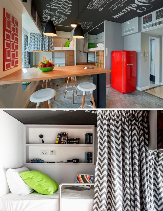 Ситуация с жильем в Гонконге стала настолько серьезной, что студенты, путешественники, предприниматели, молодые бизнесмены и начинающие специалисты предпочитают жить вместе, чтобы удержаться в самом востребованном городе Азии. По этой причине стали популярными общежития, которые здесь называют коливинг. Компактные номера рассчитаны на совместное проживание четырех человек, а кровати встроены в основные комнаты, что обеспечивает открытую планировку, давая возможность более свободно передвигаться и иметь место для учебы/работы и общения.