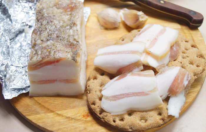 Соленое сало/ фото: attuale.ru У каждой заботливой хозяйки СССР на столе всегда лежало соленое сало. Это был универсальный продукт, который подавали к первым и вторым блюдам, использовали в качестве закуски или просто ели вприкуску с хлебом. Чаще сало заготавливали в домашних условиях сразу по несколько килограммов. И нередко оно могло залежаться и приобрести неприятный запах — его называли с «душком». Заветренное сало не выбрасывали. У него обрезали желтые края, перекручивали на мясорубке и замораживали в морозильной камере. Перед употреблением сало размораживали, добавляли свежий чеснок и намазывали на хлеб.