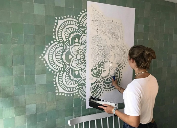 С помощью трафарета можно сделать любой узор на стенах. / Фото: Pinterest.com