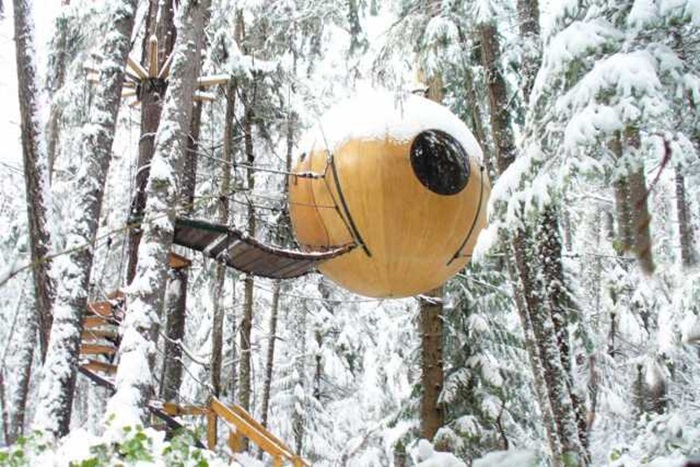 Глядя на эти странные образования, подвешенные между деревьями, складывается впечатление, что кто-то переборщил с размером скворечника или ёлочной игрушки. Но именно так выглядят полноценные гостиничные номера в комплексе Free Spirit, где можно уединиться, буквально вися в воздухе и спать почти как птицы на ветке. Такой концепт оказался не просто актуальным для лесов острова Ванкувер, но и пользуется большим спросом среди экотуристов. И хотя пока что сферы только три, в дальнейшем такие могут появиться в любой точке земной карты.