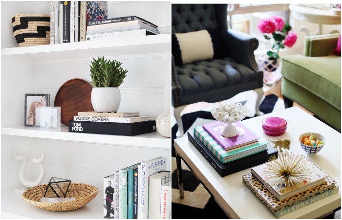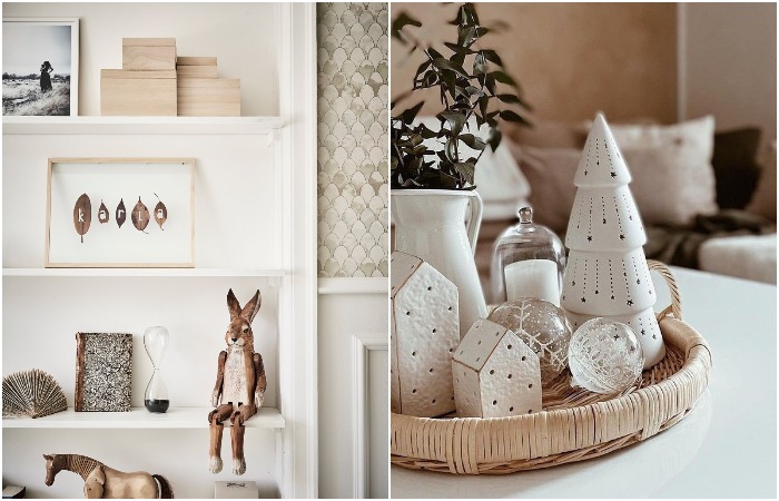 Предлагаем провести ревизию декора, который уже есть в вашем арсенале, и подумать, какие из вещей хорошо сочетаются между собой. После этого определитесь с местом расстановки – это может быть комод, прикроватная тумба, подоконник (если у вас нет штор или они короткие), консоль в прихожей. Обратите внимание, что декор, который вы захотите собрать в единую композицию, должен быть в одном стиле, но разных форм и размеров. Тогда он действительно станет украшением комнаты. Также дизайнеры советуют использовать красивый поднос для расстановки мелких предметов – так они не будут выглядеть хаотично.