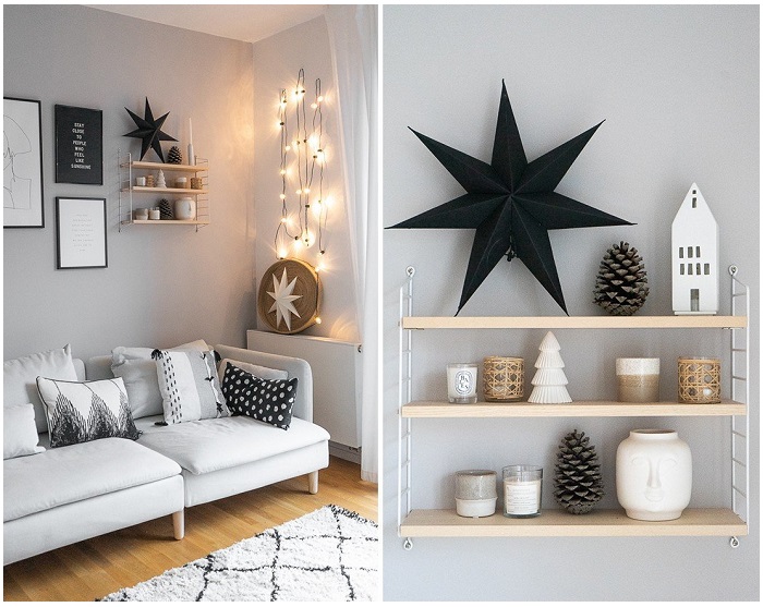 Новогодняя композиция на полке. / Фото: deladom.ru