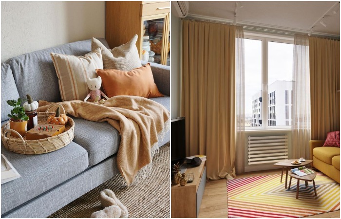 Ничто так не украшает комнату и не делает ее уютнее, как текстиль. Все, что вам нужно сделать – разложить на диване декоративные подушки, бросить на кресло вязаный плед и постелить красивый мягкий ковер. Вот увидите – интерьер сразу заиграет новыми красками, и станет намного теплее.