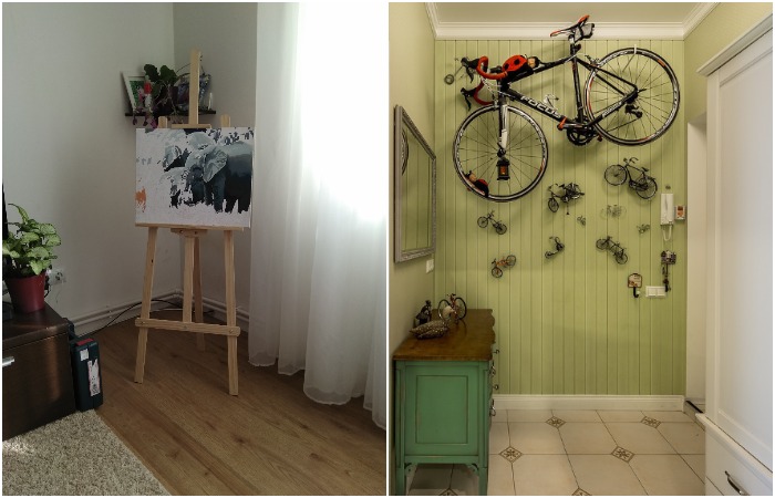 Кстати, если вы любите велоспорт или играете на музыкальном инструменте, классным декором станет даже велосипед или гитара. Важно лишь найти для хранения видное место, чтобы на них сразу обращали внимание. Как видите, любое увлечение может помочь украсить квартиру.