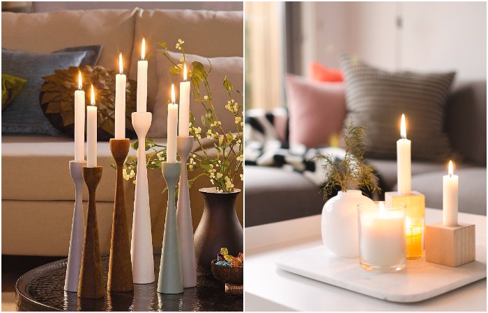Наверняка у вас в квартире найдется пара-тройка свечей, о которых вы уже успели забыть. Нет? Тогда купите несколько штук и зажгите их вечером, чтобы создать приятную романтическую атмосферу. Огонь будет отбрасывать на стены причудливые тени, и вы сможете насладиться чудесным видом. А ароматические свечи еще и наполнят комнату потрясающим запахом.