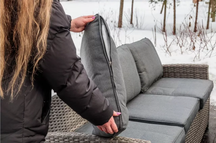 Если у садовой мебели есть текстильные элементы, их тоже стоит подготовить к зимнему периоду. Снять все тканевые чехлы и наволочки. Проверить возможность их стирки в машинке, просушить хорошо перед хранением. Перед тем как положить ткани на хранение, обработать их специальным спреем для защиты от влаги. Сложить ткани в чистое, сухое место, чтобы избежать появления плесени.