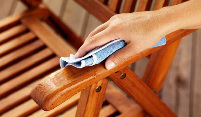 Дерево один из самых популярных материалов для садовой мебели, но также и один из самых уязвимых. Чтобы защитить деревянные предметы нужно начать с тщательной чистки мебели. Используя мягкую губку и мыльный раствор, чтобы удалить пыль и грязь, после этого ополоснуть водой и дать мебели высохнуть.