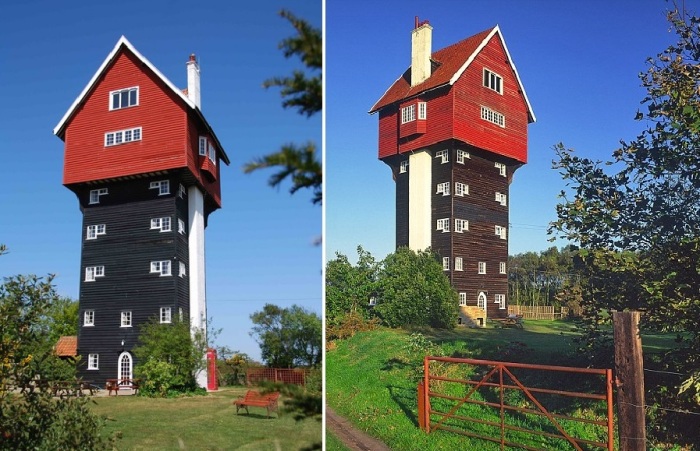 Одна из самых необычных водонапорных башен мира находится среди идиллической сельской местности английского графства Саффолк. Более 85 лет назад, во время строительства гидротехнического сооружения власти так старались органично интегрировать массивный объект в окружающий деревенский ландшафт, что та часть, где находился резервуар для воды замаскировали под ...коттедж. К счастью, после того, как водонапорная башня потеряла свой функционал и была выкуплена, новые владельцы постарались сохранить весь ее колорит при обустройстве атмосферного отеля с прекрасными видами за окном. Теперь это уютное пространство, известное как «Дом в облаках», предлагает незабываемый отдых среди живописного ландшафта, над которым он и возвышается.