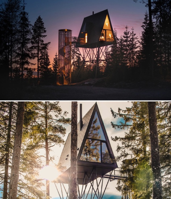 Хоть зимой, хоть летом отдых в таком домике на дереве будет незабываемым (Pan Treetop, Норвегия).