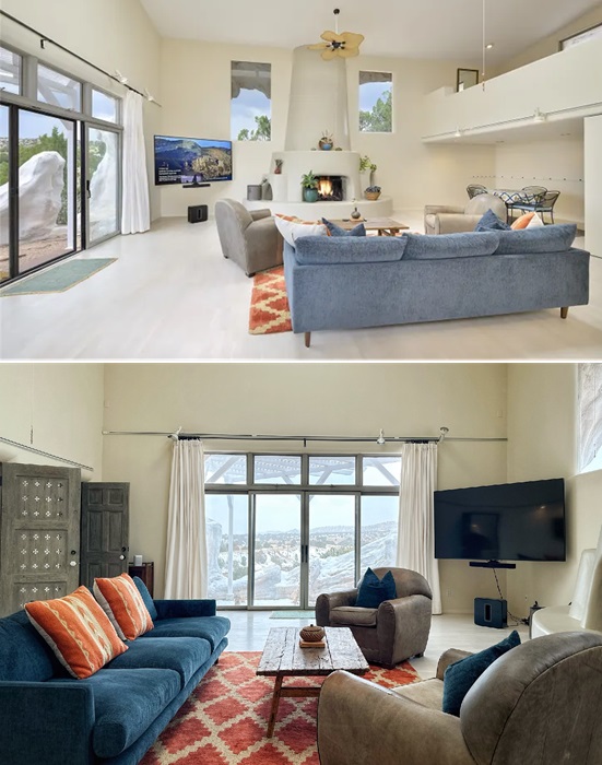 Недавно был пристроен и гараж с санузлом, чтобы во время отдыха на террасе или возле костровой чаши не нужно было заходить в дом, чтобы «припудрить носик». Рядом с ним новые владельцы планировали строительство видового бассейна, но эту затею оставили, поскольку решили продать свое «облачное» домовладение, выставив на одном из сайтов недвижимости штата Нью-Мексико. Они просят за потрясающий во всех отношениях загородный дом 899 тыс. долларов. В эту стоимость входит и 2,1 гектара «лунного пейзажа», затерянного среди пустынной горной гряды Сангре-де-Кристо. В продолжение темы загородных домов, предлагаем заглянуть в те, которые в прямом смысле слова балансируют на грани, поскольку построены на вершинах утесов и скал.