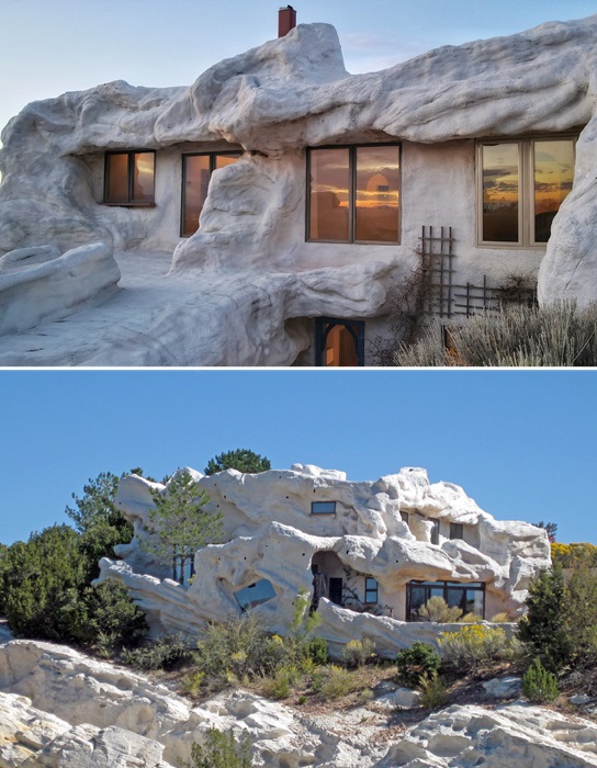Роскошный загородный дом, мастерски замаскированный под причудливые валуны белой скалы горной гряды Сангре-де-Кристо (Casa de Roca, США). | Фото: apartmenttherapy.com.