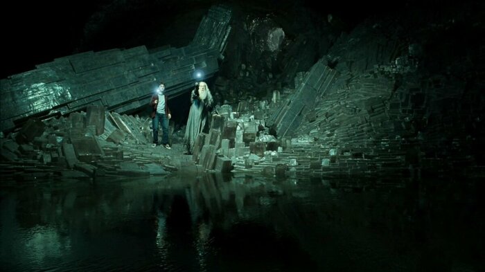 Одна из локаций в последних фильмах — пещера, где был спрятан один из крестражей Волан-де-Морта (часть его души). Этот эпизод сняли в живописных утесах Мохер на побережье Атлантического океана в графстве Клэр, Ирландия. Они достигают высоты более двухсот метров над уровнем моря. Невзирая на то, что на эпизод отведено совсем немного времени в финальной версии фильма, его съемки стали настоящим испытанием для съёмочной группы, заняв почти целую неделю. А самих актёров снимали уже в студии.