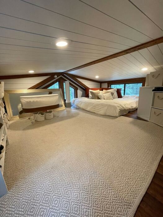 Родительская спальня расположена на лофте. | Фото: tinyhousetalk.com.