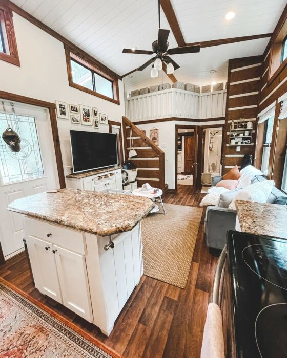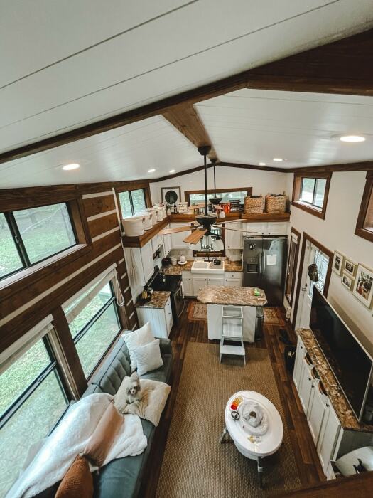 Высота потолков и открытая планировка – идеальный вариант для малогабаритного дома. | Фото: tinyhousetalk.com.