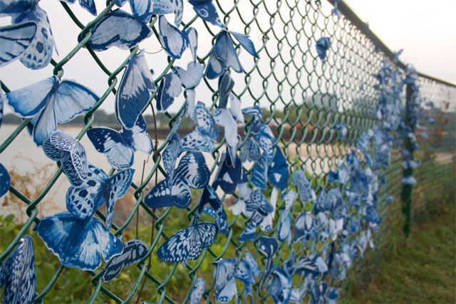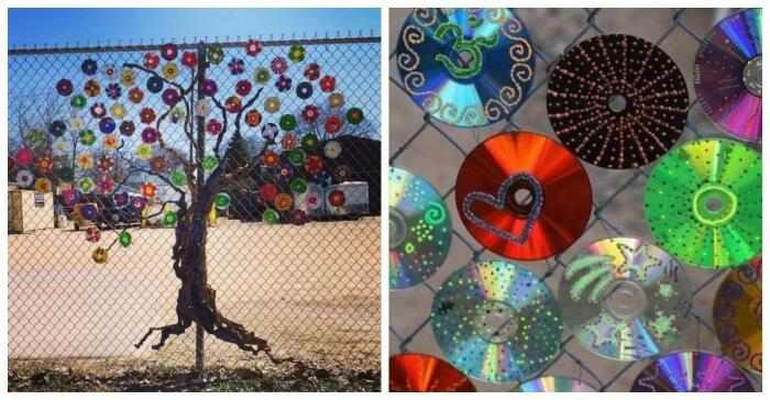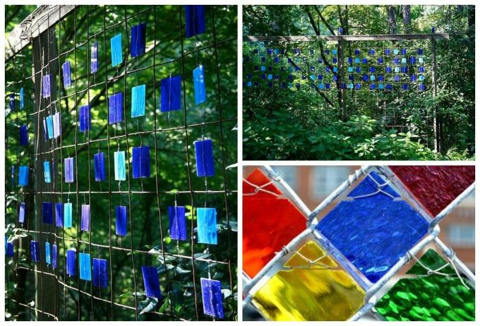 Кусочки пластика тоже хороши /Фото:ru.pinterest.com При желании скреативить, в ход идут пластиковые бутылки. Тут, конечно, тоже важно соблюдать баланс, но всё же ясно, что очень эстетичным забор получиться не сможет. Самодельные поделки из из пластика от старых бутылок цветочки из стаканчиков, например, в любом случае немного украсят однообразную сетку. Но, если эстетика для участка очень важна, а забор менять не хочется, существует долгий, трудоёмкий, но очень красиво способ декора забора с помощью ракушек. Результат в любом случае точно будет стоить затраченных усилий. Тут же может быть применена для разнообразия идея с шариками из стекла и галькой. Через них будет красиво проходить свет на закате и рассвете. Редко встретишь заборы, которые были бы украшены вышивкой как-то не принято украшать забор любого рода текстиле. Однако, такое зрелище, вызывающее неоднозначные чувства явно заслуживает внимания. Почему бы и нет? Подобная идея вовсе не нова и используется, как это не странно, достаточно часто, вышивка которой украшают заборы бывает выполнена в различных техниках и стилях.