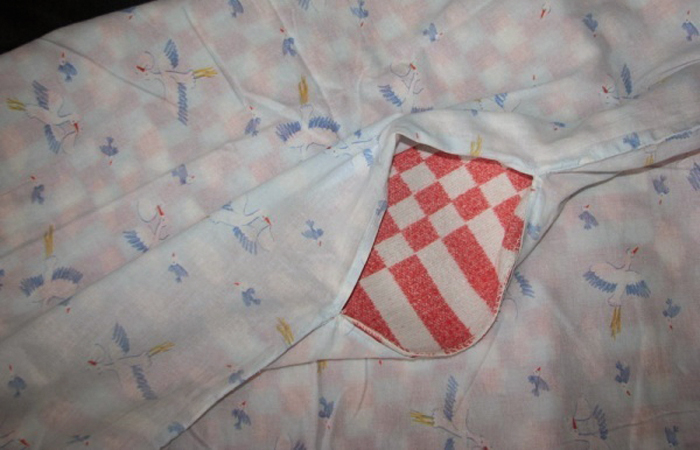 Также бытует мнение, что ромбовидный вырез был создан специально, чтобы быстро согреть ноги. Для этого нужно было их расположить внутри отверстия — поближе к шерстяному одеялу. А еще с помощью выреза можно было определять головной и ножной край по рисунку на одеяле.