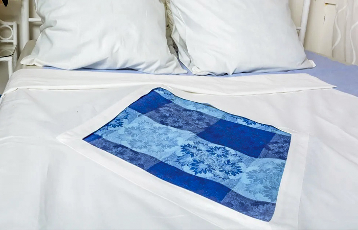 Постельное белье/ фото: ozon.ru Небольшой «островок» на пододеяльнике служил настоящим покрывалом. На нем можно было расположиться в одежде во время бодрствования, к примеру, в больнице или другом учреждении, где нет возможности заправить постель. На этом кусочки одеяла можно было поиграть в шахматы или шашки, сидя на кровати. Также отверстие помогало не путать стороны, если днем отдыхаешь в одежде на пододеяльнике.