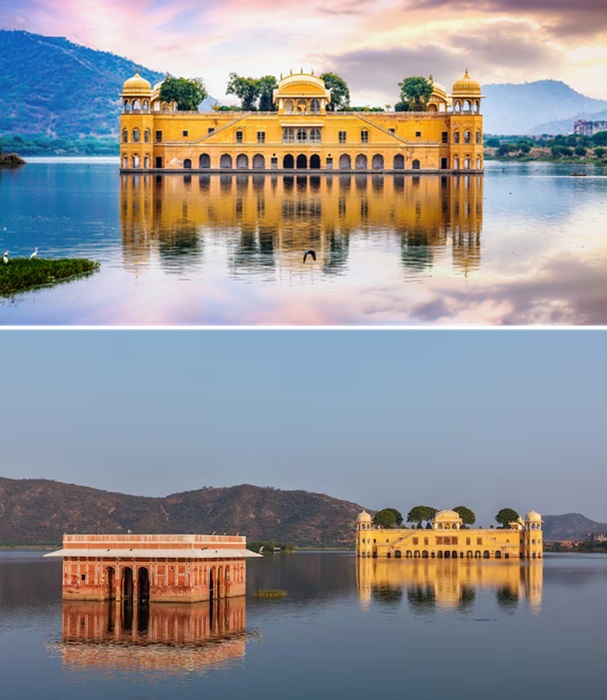 Le Jal Mahal (Джал-Махал или «Водный дворец») – одно из самых таинственных сооружений Джайпура. Расположенный посреди озера Ман Сагар, он является исключительным примером органичного слияния архитектуры и природы, которое мастерски подчеркнули архитекторы и строители в далеком XVIII веке (возводили по заказу махараджа Мадхо Сингха I). Дворцовый ансамбль получился настолько изысканным, что кажется будто он плывет по воде. И пусть в наши дни потрясающее архитектурное творение затоплено до пятого этажа, оно наглядно демонстрирует, какой вершины достигли мастера прошлых столетий, не имея ни тяжелой строительной техники, ни компьютерных программ для точных расчетов, ни современных материалов.